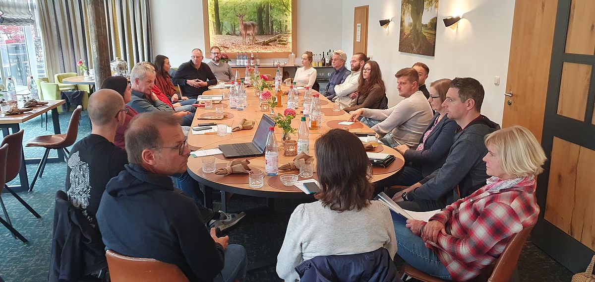Zum Frühjahrs-Netzwerktreffen trafen sich Vertreterinnen und Vertreter von 11 Netzwerkregionen sowie von BBSR und Hochschule Neubrandenburg am 10. und 11. April 2025 in Merzig. Die Gastgeber vom Landkreis Merzig-Wadern hatten ein interessantes Exkursionsziel mit der Römische Villa in Perl-Borg ausgewählt. Dort erhielt die Gruppe durch einen Jugend-Gästeführer einen spannenden und kurzweiligen Vortrag zu der rekonstruierten „villa rustica“ und dem damaligen Leben. Zudem stand dort der Austausch zum Thema "Kultur als Daseinsvorsorge" und zum Programm "AllerLand" auf der Agenda. Die obligatorischen Berichte zu den Aktivitäten in den Netzwerkregionen nahmen viel Raum am ersten sowie zweiten Tag ein. Ein Online-Vortrag von Prof. Dehne zum Thema "Bürgergenossenschaften und Daseinsvorsorge" rundete das Netzwerktreffen ab.